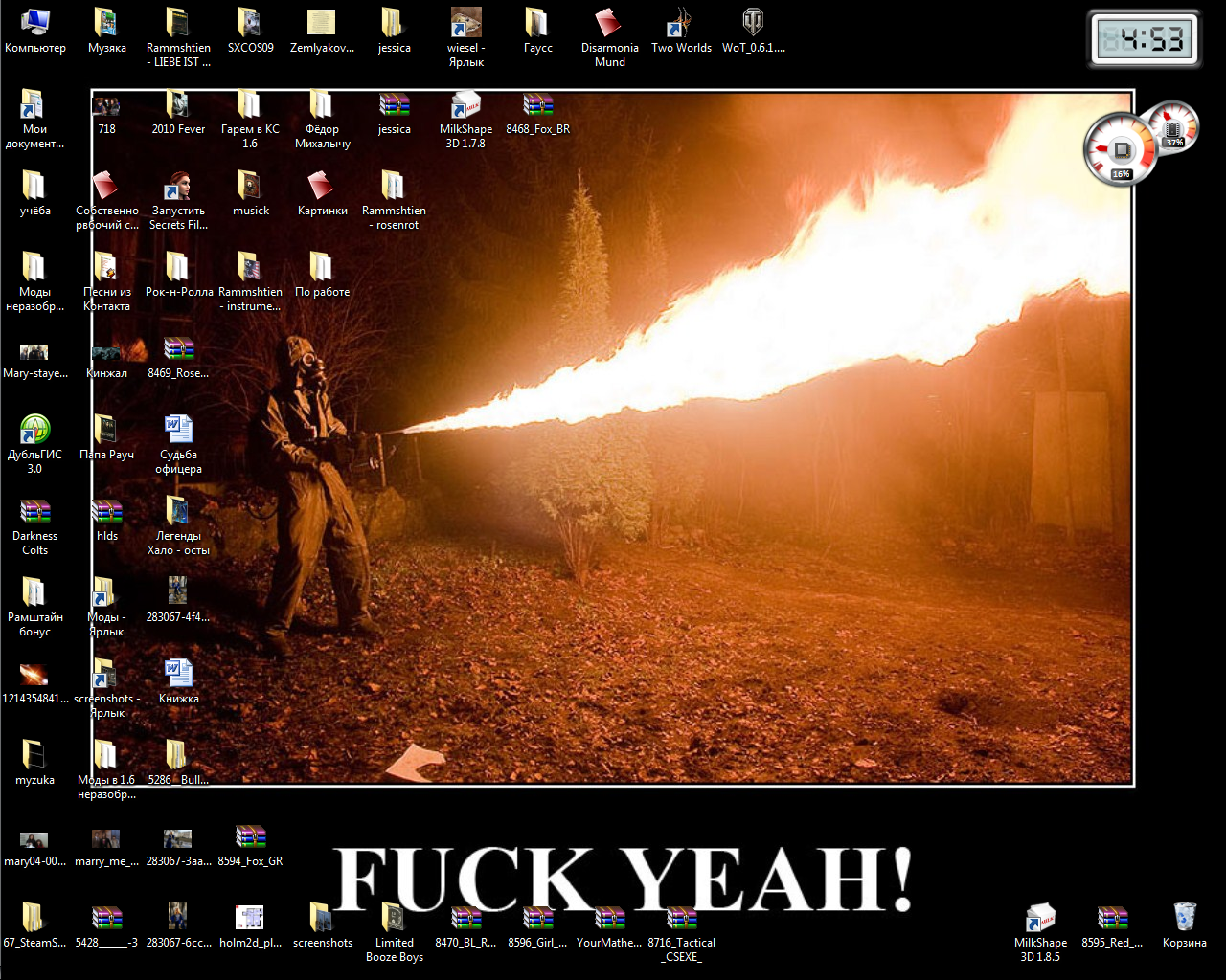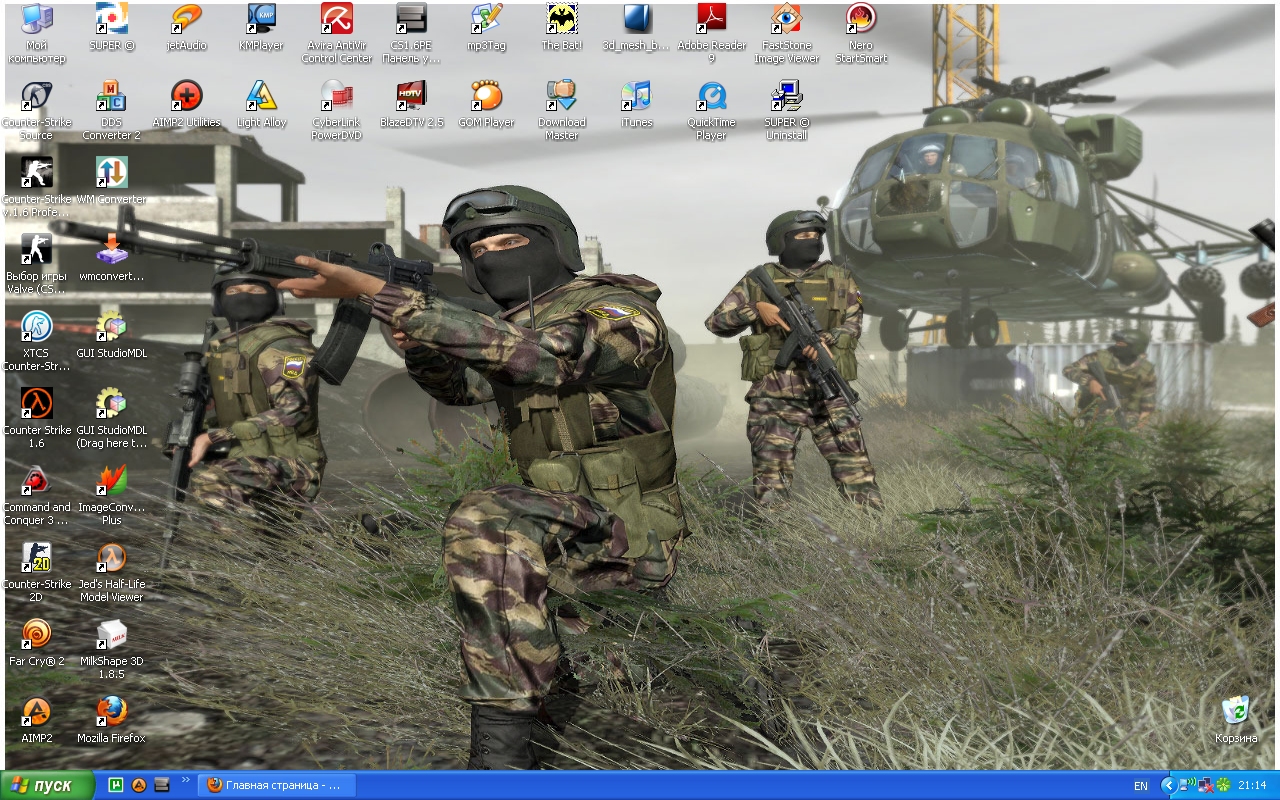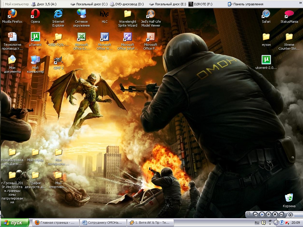 | Kак выглядит ваш рабочий стол? Вот мой: Тем кто не умеет скринить рабочий стол: С правого края клавиатуры есть кнопочка "Print Screen" - вся суть в ней. Когда на мониторе стоит просто рабочий стол - нужно нажать эту волшебную кнопочку. Потом сразу заходим в Paint, нажимаем Правка - Вставить появится изображение рабочего стола в редакторе Paint. Потом надо нажать "сохранить как..." - сохранить в Jpg формате и кидать эту картинку либо через прикрепление, либо через radikal.ru или image.kz