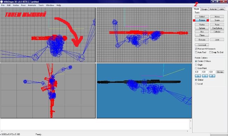 | fesukre,вот я прочел,дополню кое что: я делаю по другому без открытия стандартной модели - 1) удаляем руки 2) далее Rotate, поворачиваем мышкой выделенную модель 3) и на конец жмем Move и мышкой поднимаем модель вверх (не выше 2-3х квадратов от жёлтой оси) вот собственно мой способ+)))