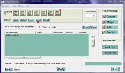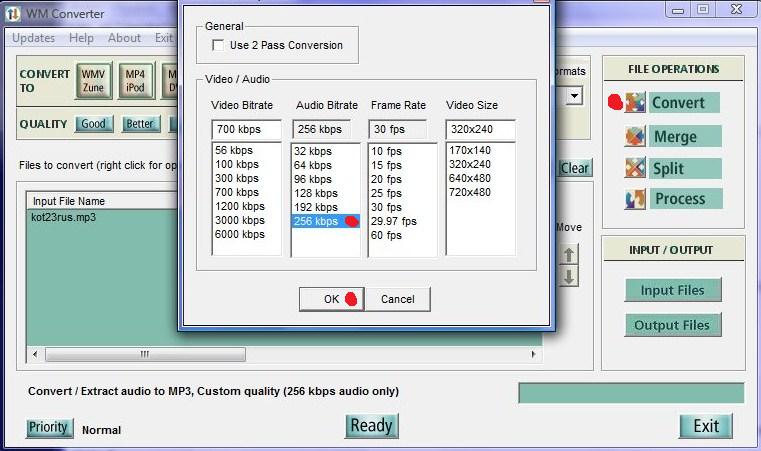 ставим 256kbps качества кнопку нажмите кнопку "Convent".